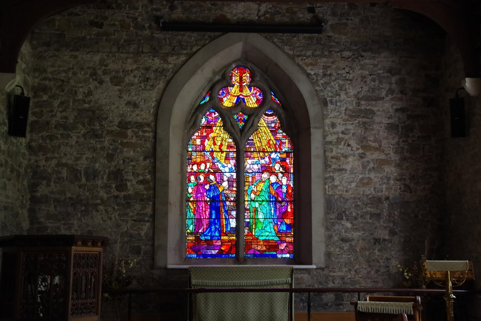 | St Patrick's Church Trim, looking through break in castle wall. |